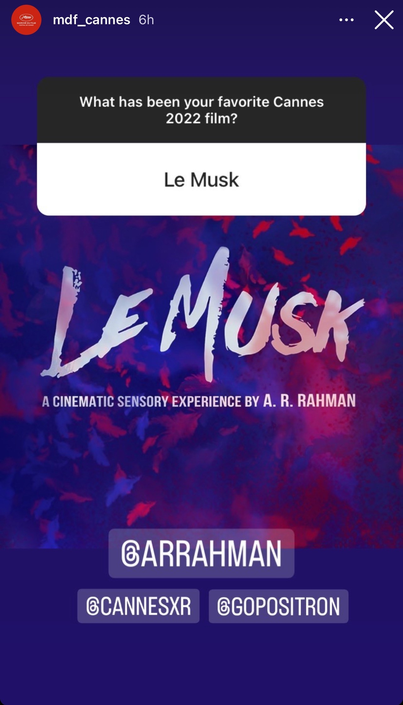 With scent being the key to unlocking the story, the movie is immersive, pathbreaking and unparalleled as it marks a new frontier in cinema. Directed and scored by Oscar and Grammy-winning composer A.R. Rahman— who makes his directorial debut with the film —Le Musk is all set to exclusively premiere at Cannes XR in collaboration with Marché du Film, a part of the 75th Cannes Film Festival. Punctuated by scent, motion and music,Le Muskis a feature that ushers new ground in art and technology, merging worlds, mediums and cultures.